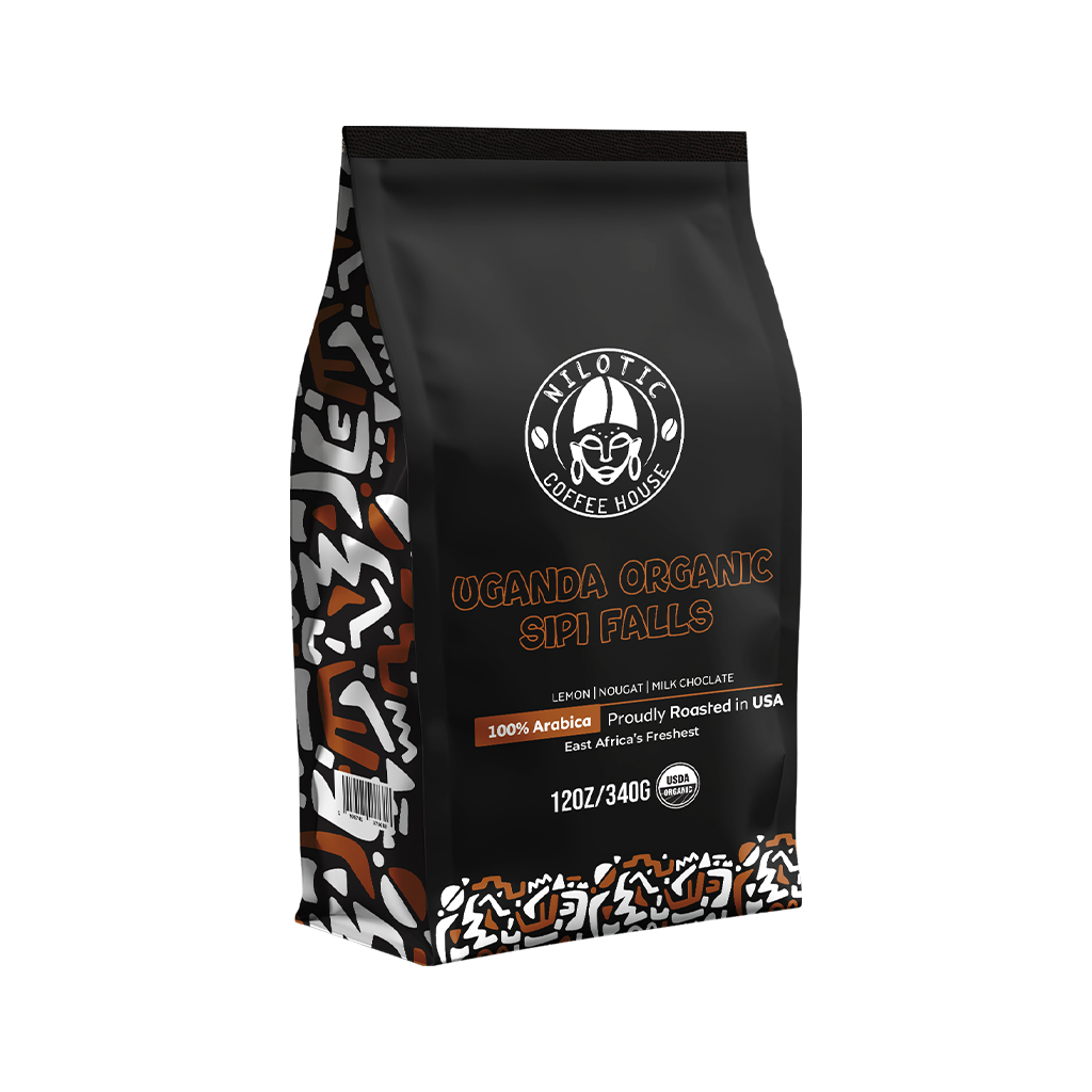 Nilotic Coffee House Medium Roast Ugandan Sipi Falls Coffee – Single-Origin, Whole Bean, Organic, Fair-Trade – Lemon, nougat, milk, chocolate – Ideal for Espresso & French Press – 12oz